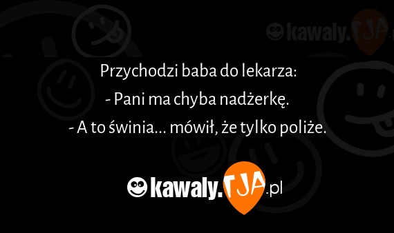Przychodzi baba do lekarza: - Pani ma chyba nadzerke. - A to swinia... mowil, ze tylko polize.