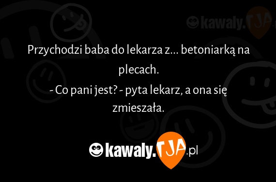 Przychodzi baba do lekarza z... betoniarką na plecach. - Co pani jest? - pyta lekarz, a ona się zmieszała.