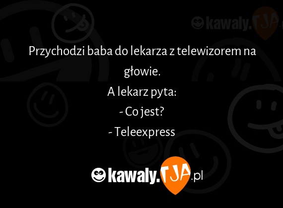 Przychodzi baba do lekarza z telewizorem na głowie. A lekarz pyta: - Co jest? - Teleexpress