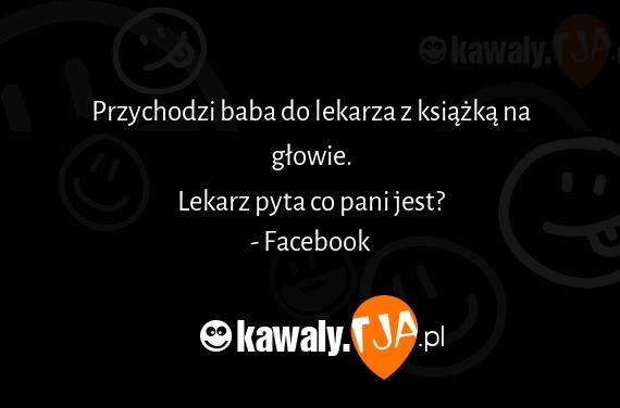 Przychodzi baba do lekarza z książką na głowie. Lekarz pyta co pani jest? - Facebook