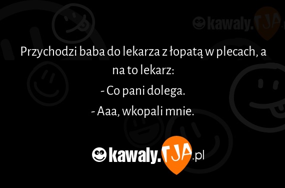 Przychodzi baba do lekarza z lopata w plecach, a na to lekarz: - Co pani dolega. - Aaa, wkopali mnie.
