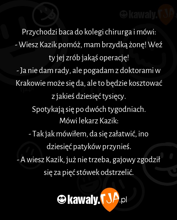 Przychodzi baca do kolegi chirurga i mówi: