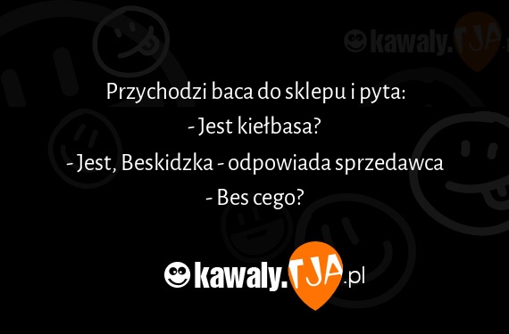 Przychodzi baca do sklepu i pyta: - Jest kielbasa? - Jest, Beskidzka - odpowiada sprzedawca - Bes cego?