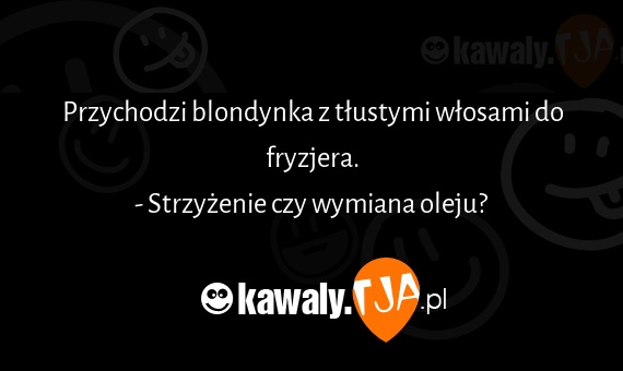 Przychodzi blondynka z tłustymi włosami do fryzjera. - Strzyżenie czy wymiana oleju?