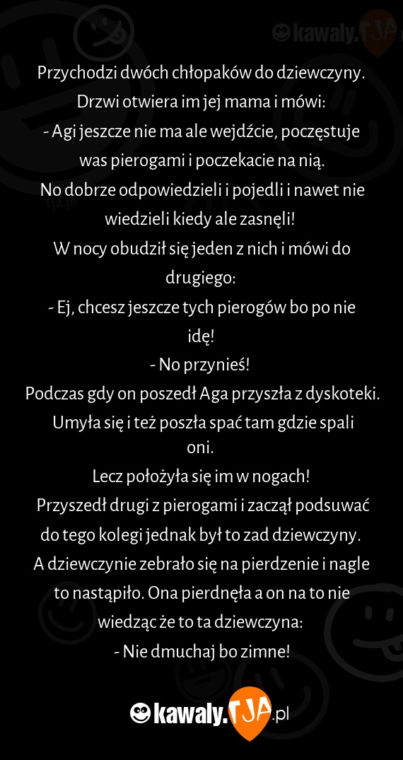 Przyszedł drugi z pierogami i zaczął podsuwać do tego kolegi jednak był to zad dziewczyny.