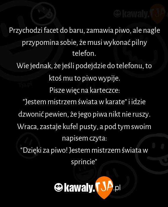 "Jestem mistrzem Å›wiata w karate” i idzie dzwonić pewien, że jego piwa nikt nie ruszy.