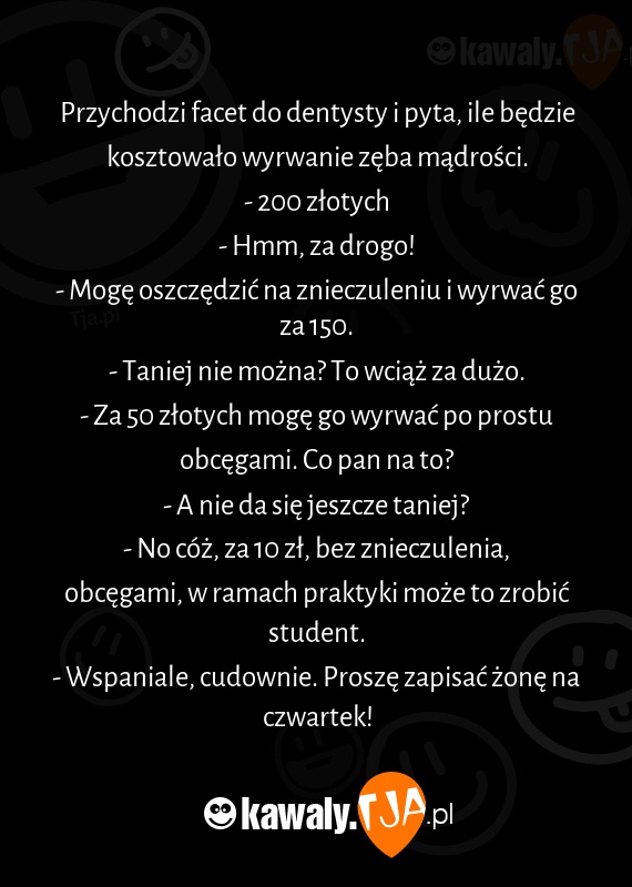 - No cóż, za 10 zł, bez znieczulenia, obcęgami, w ramach praktyki może to zrobić student.