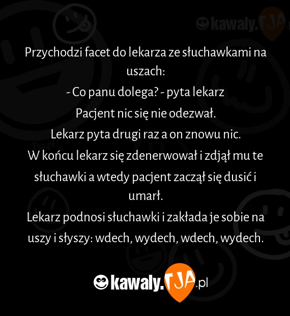 W końcu lekarz się zdenerwował i zdjął mu te słuchawki a wtedy pacjent zaczął się dusić i umarł.