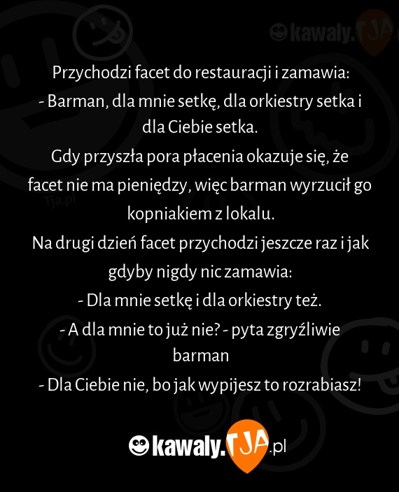 Na drugi dzień facet przychodzi jeszcze raz i jak gdyby nigdy nic zamawia:
