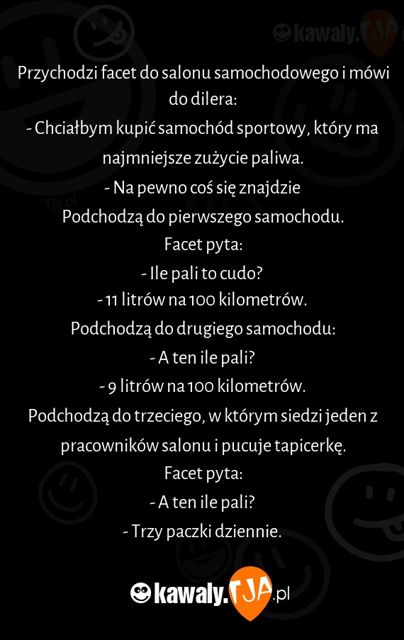 Przychodzi facet do salonu samochodowego i mówi do dilera:
