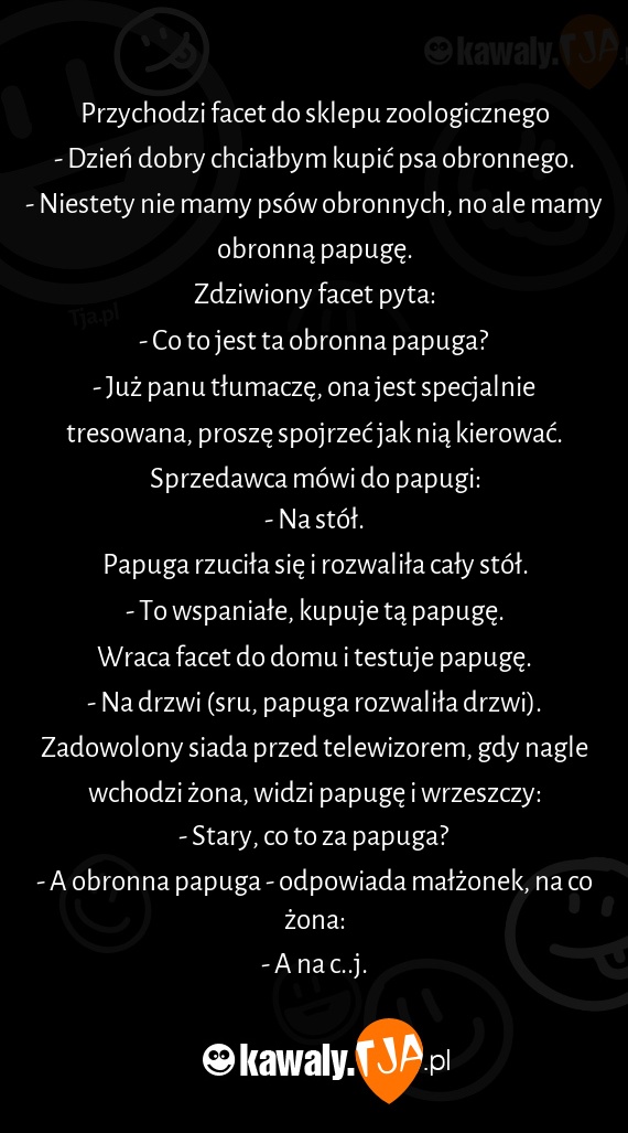 - A obronna papuga - odpowiada małżonek, na co żona: