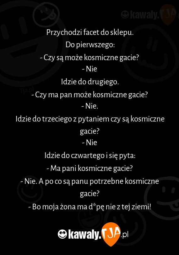 Idzie do trzeciego z pytaniem czy są kosmiczne gacie?