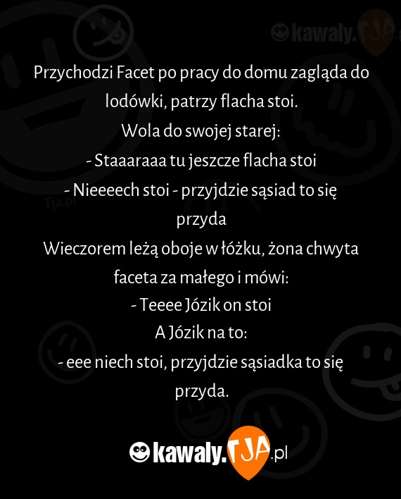 Przychodzi Facet po pracy do domu zagląda do lodówki, patrzy flacha stoi.