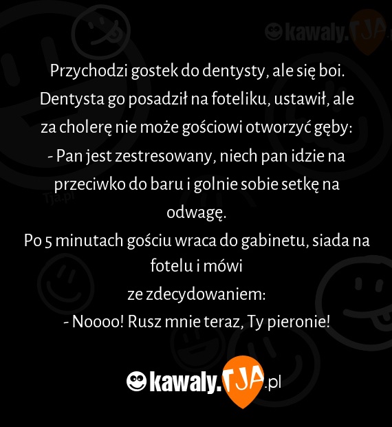 Dentysta go posadził na foteliku, ustawił, ale za cholerę nie może gościowi otworzyć gęby: