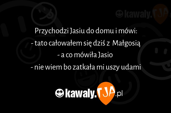 Przychodzi Jasiu do domu i mowi: - tato calowalem sie dzis z Malgosia - a co mowila Jasio - nie wiem bo zatkala mi uszy udami