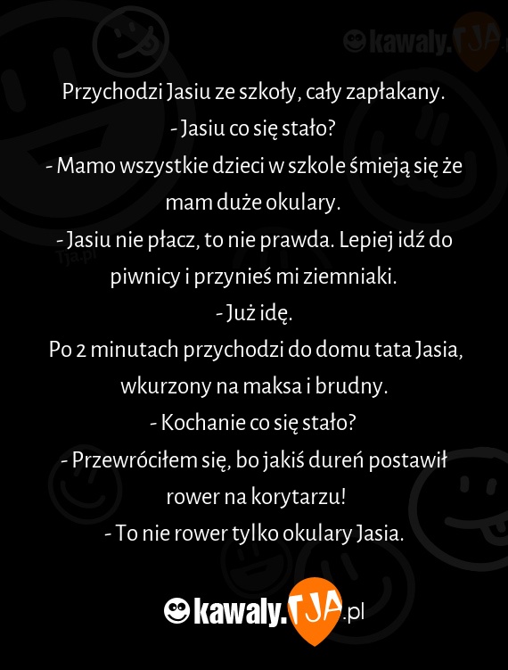 Przychodzi Jasiu ze szkoły, cały zapłakany.