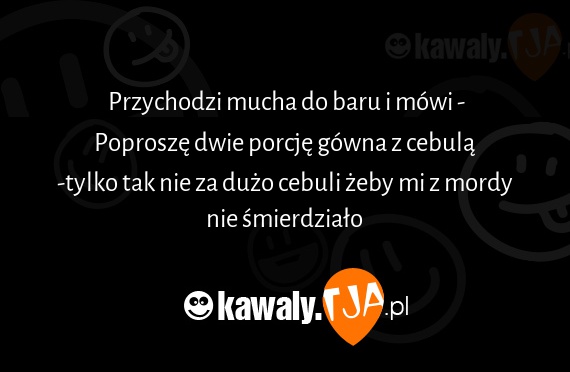 Przychodzi mucha do baru i mowi - Poprosze dwie porcje gowna z cebula -tylko tak nie za duzo cebuli zeby mi z mordy nie smierdzialo