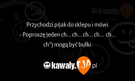 Przychodzi pijak do sklepu i mówi. - Poproszę jeden ch... ch... ch... ch... ch... ch*j mogą być bułki.