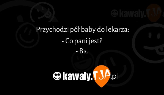 Przychodzi pół baby do lekarza: - Co pani jest? - Ba.