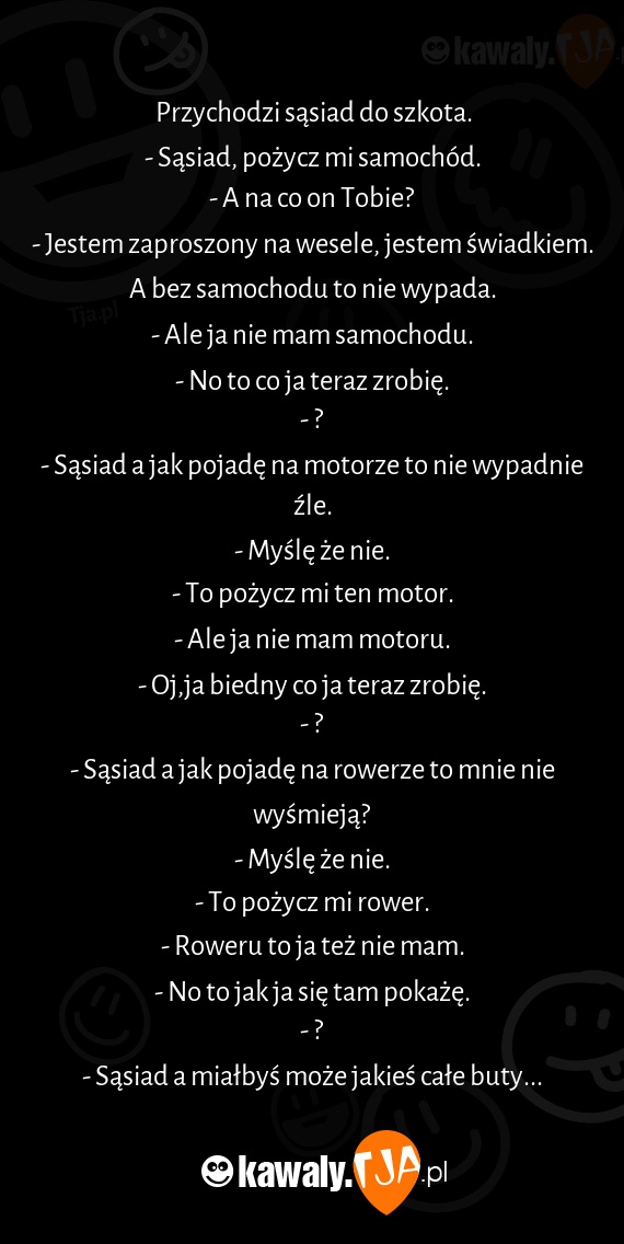 - Sąsiad a jak pojadę na rowerze to mnie nie wyśmieją?