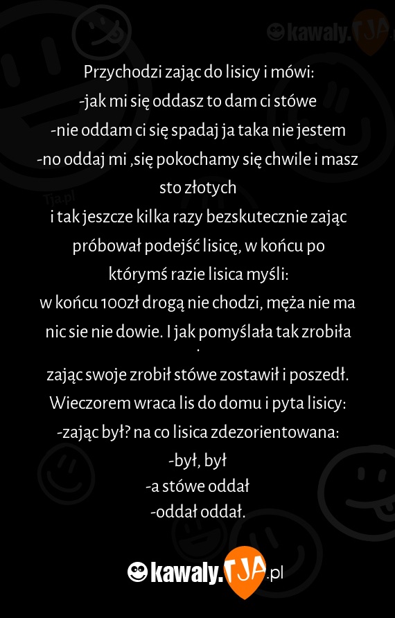 Przychodzi zając do lisicy i mówi: