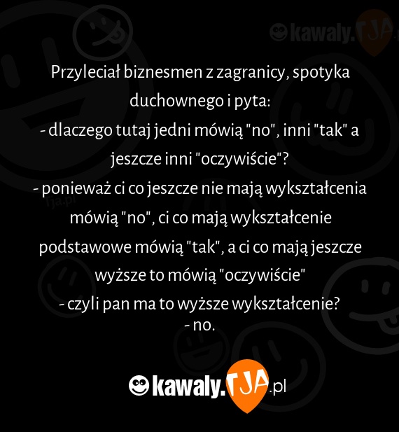 - ponieważ ci co jeszcze nie mają wykształcenia mówią "no", ci co mają wykształcenie podstawowe mówią "tak", a ci co mają jeszcze wyższe to mówią "oczywiście"