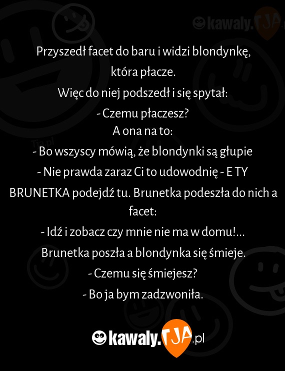 Przyszedł facet do baru i widzi blondynkę, która płacze.