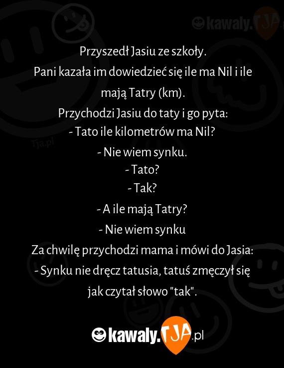 - Synku nie dręcz tatusia, tatuś zmęczył się jak czytał słowo "tak".