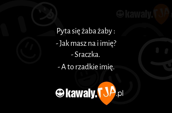 Pyta się żaba żaby : - Jak masz na i imię? - Sraczka. - A to rzadkie imię.