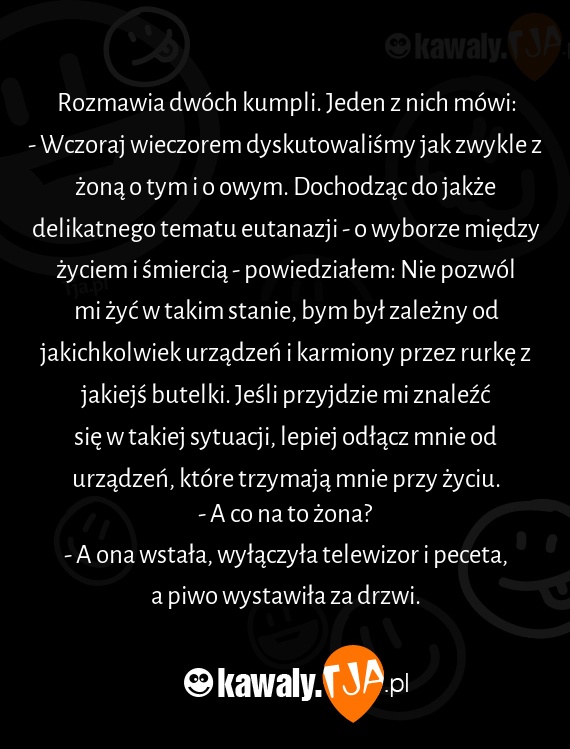 Rozmawia dwóch kumpli. Jeden z nich mówi: