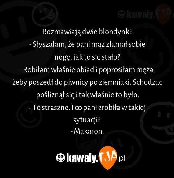- Robiłam właśnie obiad i poprosiłam męża, żeby poszedł do piwnicy po ziemniaki. Schodząc pośliznął się i tak właśnie to było.