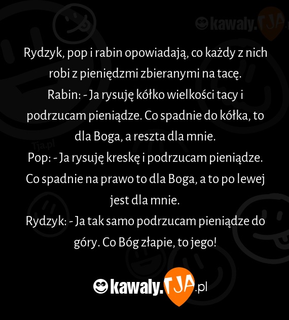 Pop: - Ja rysuję kreskę i podrzucam pieniądze. Co spadnie na prawo to dla Boga, a to po lewej jest dla mnie.