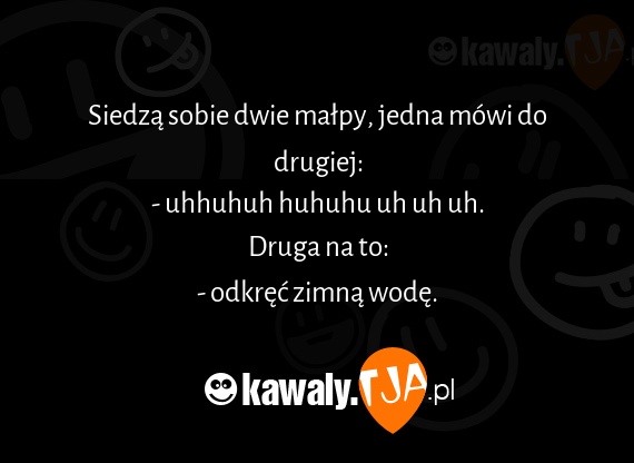 Siedza sobie dwie malpy, jedna mowi do drugiej: - uhhuhuh huhuhu uh uh uh. Druga na to: - odkrec zimna wode.