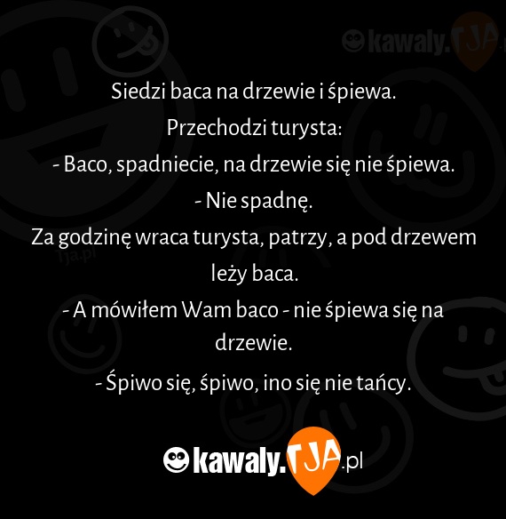 Za godzinę wraca turysta, patrzy, a pod drzewem leży baca.