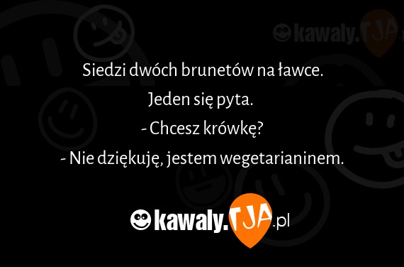 Siedzi dwóch brunetów na ławce. Jeden się pyta. - Chcesz krówkę? - Nie dziękuję, jestem wegetarianinem.
