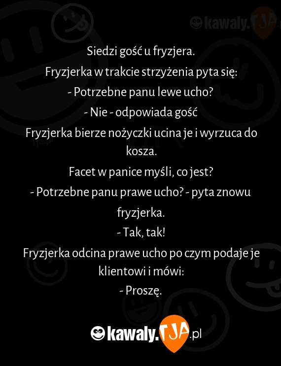 - Potrzebne panu prawe ucho? - pyta znowu fryzjerka.