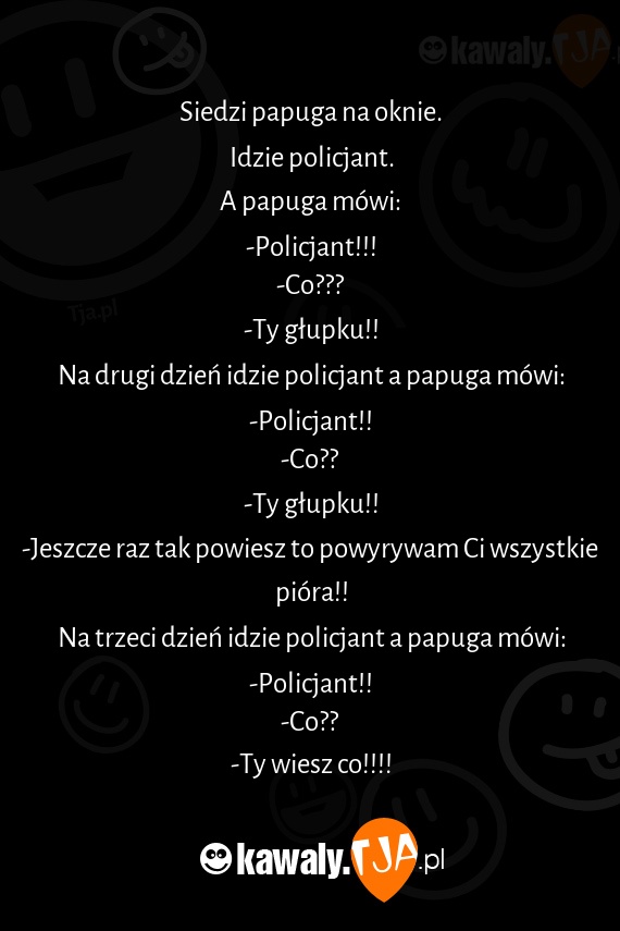 Na trzeci dzień idzie policjant a papuga mówi: