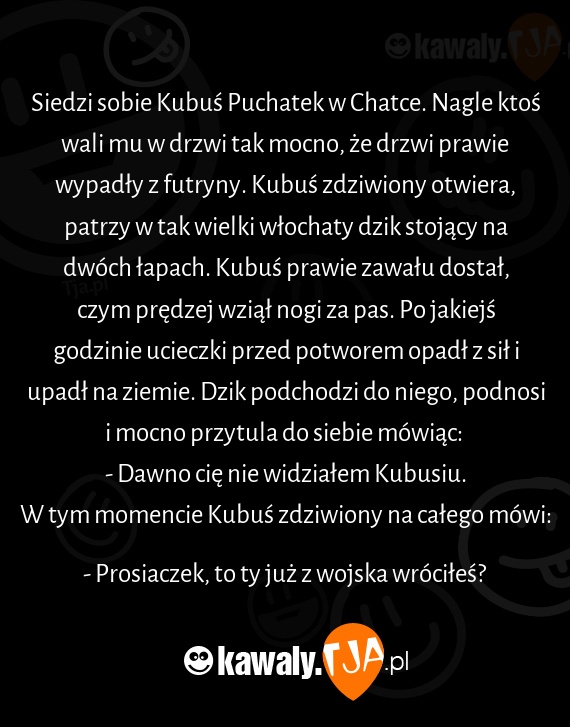 - Prosiaczek, to ty już z wojska wróciłeś?