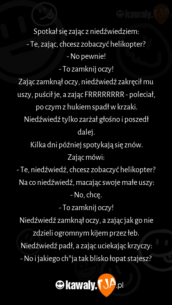 Niedźwiedź padł, a zając uciekając krzyczy: