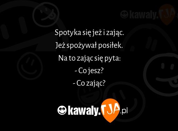 Spotyka się jeż i zając. Jeż spożywał posiłek. Na to zając się pyta: - Co jesz? - Co zając?