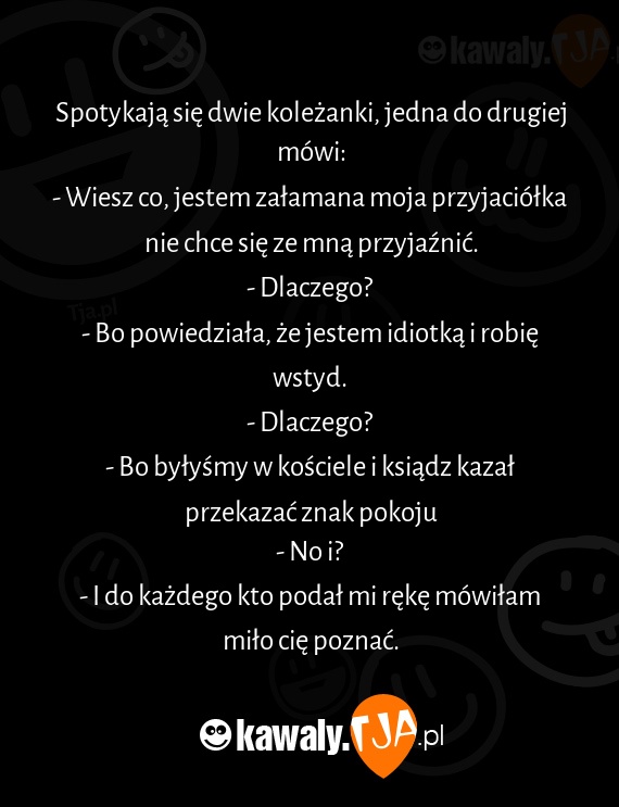 Spotykają się dwie koleżanki, jedna do drugiej mówi: