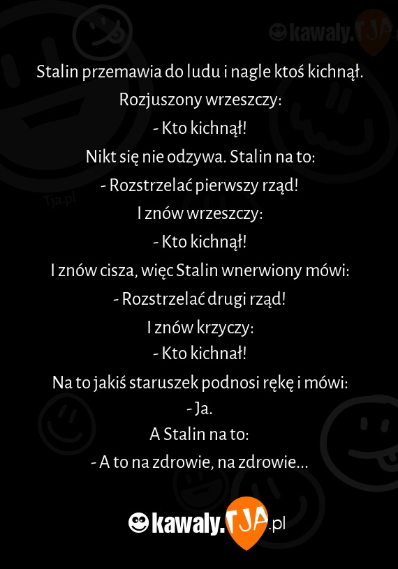 Stalin przemawia do ludu i nagle ktoś kichnął. Rozjuszony wrzeszczy: