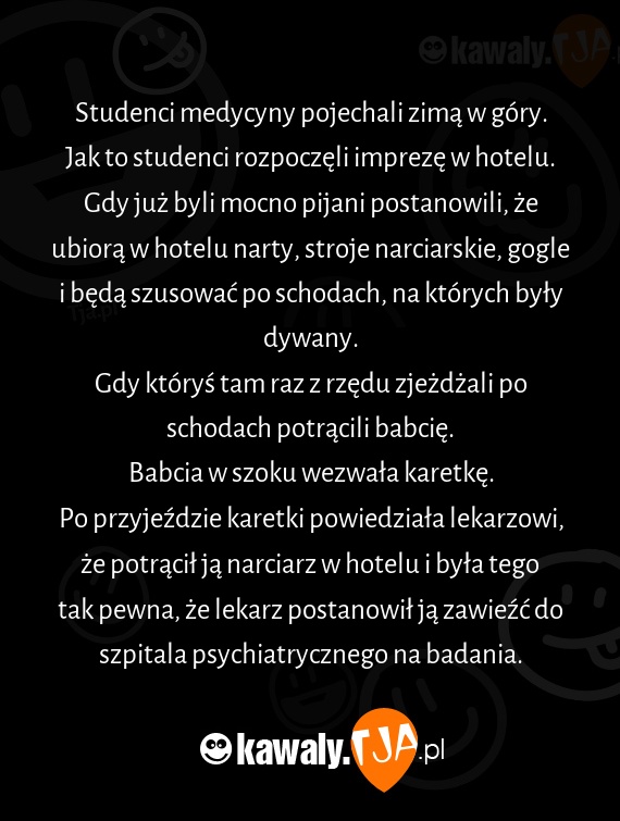Gdy któryś tam raz z rzędu zjeżdżali po schodach potrącili babcię.