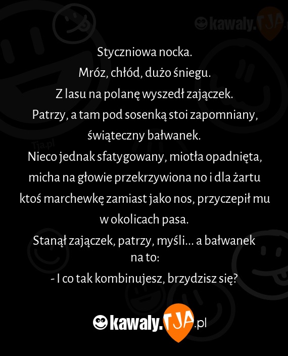 Stanął zajączek, patrzy, myśli... a bałwanek na to: