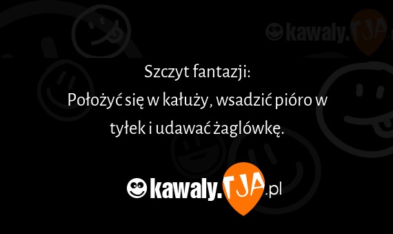 Szczyt fantazji: Polozyc sie w kaluzy, wsadzic pioro w tylek i udawac zaglowke.