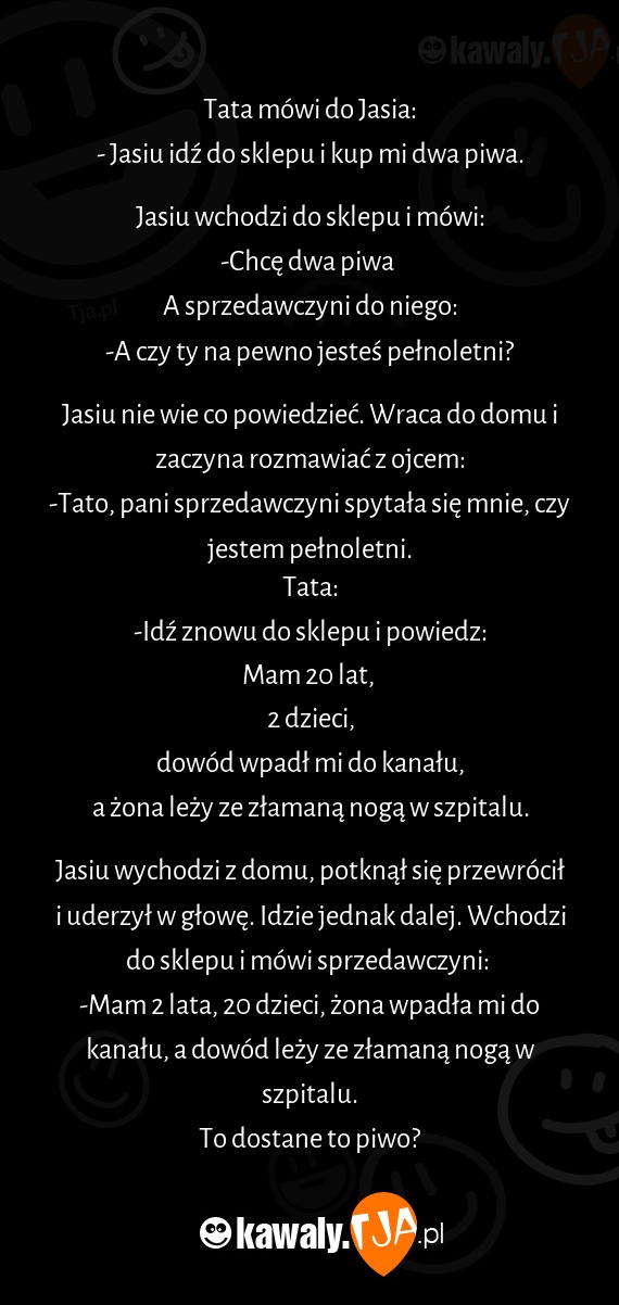<br>- Jasiu idź do sklepu i kup mi dwa piwa.