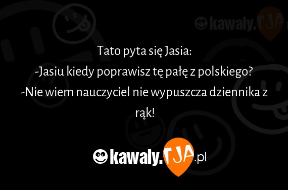 Tato pyta sie Jasia: -Jasiu kiedy poprawisz te pale z polskiego? -Nie wiem nauczyciel nie wypuszcza dziennika z rak!
