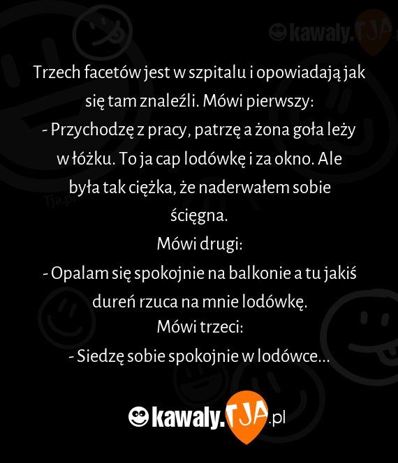 Trzech facetów jest w szpitalu i opowiadają jak się tam znaleźli. Mówi pierwszy: