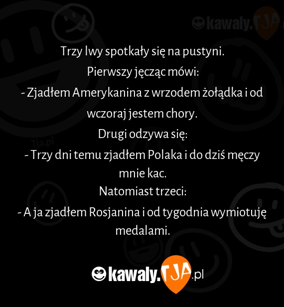 Trzy lwy spotkały się na pustyni.