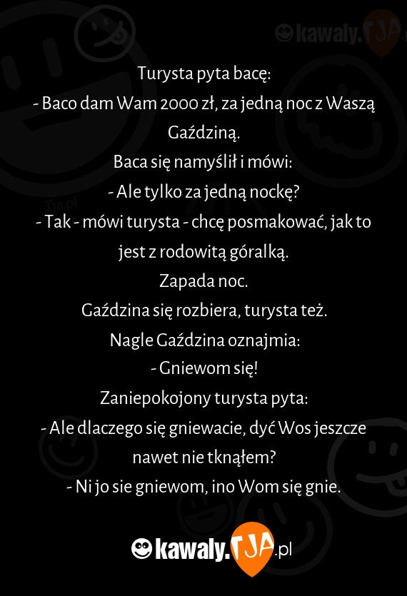 - Tak - mówi turysta - chcę posmakować, jak to jest z rodowitą góralką.